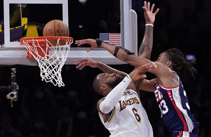 JRS直播12月27日讯 NBA年终大战已经结束了,但湖人和篮网关键时刻,詹姆斯遭隔扣一幕仍旧引热议,美媒Brooklyn netcast晒出现场抓拍的高清照,配文写道:隔扣詹姆斯后,在这张照片中,克拉克斯顿的表情太冷酷了。