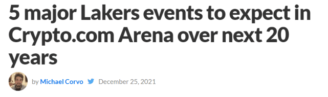 JRS直播12月26日讯 ,湖人主场正式更名为Crypto球馆,对篮网赛前,地板的标志正式更换。据此前报道,这次更名签约长达20年,总金额7亿美元。斯台普斯中心已经成为湖人的历史,Crypto球馆将见证这支球队的未来。那么,未来20年,更名的湖人主场将见证什么呢?美媒clutchpoints列出了5大盛事。