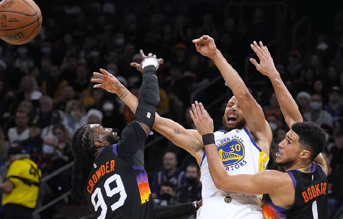 JRS直播12月26日讯 ,NBA年终大战结束了一场焦点对决,勇士客场116-107战胜太阳。在没有维金斯,普尔,李等人的情况下,勇士顶住了压力,前三节和对手战成平手,末节库里和波特大爆发,勇士拿下胜利的同时夺回了联盟第一的宝座。这场比赛库里轰下了自己在年终大战的历史最高分33分,波特19分,其中末节尾声阶段连续砍分,是勇士拿下胜利的关键。太阳的三巨头艾顿18分7篮板,保罗21分8助攻6篮板,布克低迷只有13分入账。