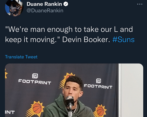 比赛结束之后,布克接受采访,他表示:像个男人一样,接受这场失利,向前看。