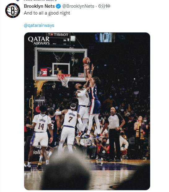 JRS直播12月26日讯 ,篮网拒绝23分大逆转,年终大战122-115击败湖人,关键时刻,哈登助攻克拉克斯顿隔扣詹姆斯,之后哈登连续罚球得分从而终结比赛;赛后篮网官方晒出克拉克斯顿隔离詹姆斯庆祝胜利,杜兰特第一时间发推庆祝:篮网收下了胜利。