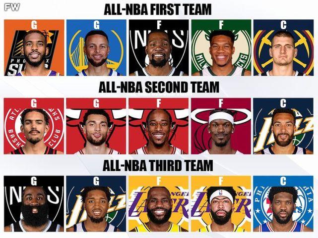 JRS直播12月25日讯近日,美媒Fadeaway World根据赛季至今的表现,预测了2021-22赛季的年度最佳阵容。他们预测入选一阵的球员包括保罗、库里、杜兰特、字母哥和约基奇;入选二阵的球员包括特雷-杨、拉文、德罗赞、巴特勒和戈贝尔;入选三阵的球员包括哈登、米切尔、詹姆斯、浓眉和恩比德。