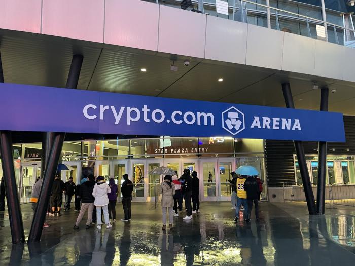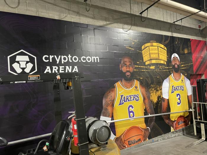 JRS直播12月24日讯 ,湖人主场对阵马刺,这是湖人在斯台普斯中心的最后一场比赛;目前湖人主场已经换上新的标志,正式更名为Crypto.com球馆,全新的元素已经上线,湖人主场已经贴上新的巨幅海报,詹姆斯和浓眉两大巨星出镜。