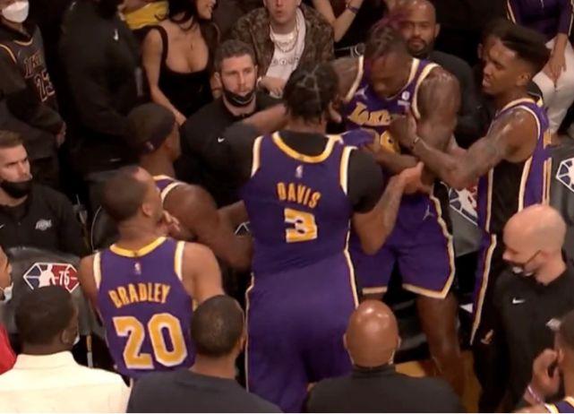 这不免让人想起了此前湖人队内的内讧,浓眉哥和霍华德也是在暂停时发生了口角,浓眉追着大吼,两人甚至有推搡的动作,画面一度失控!之后下半场霍华德主动去拍浓眉的胸膛示好,但下半场没有再获得出场机会,在赛后他也是主动表示“浓眉仍是我的兄弟,那件事过去了”