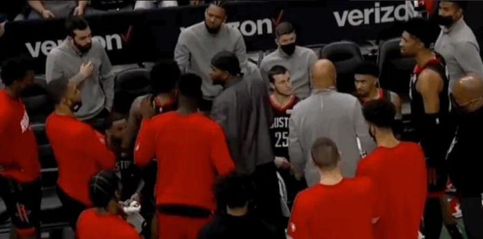 JRS直播12月23日讯 ,火箭与雄鹿的比赛进行中,半场结束火箭50:63落后,在暂停时发生不和谐的一幕,伍德冲着队友阿尔莫尼布鲁克斯怒吼,引发了一次小内讧!