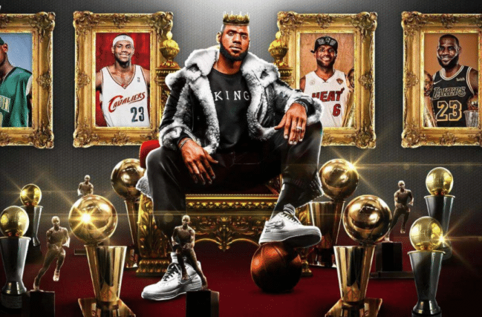 职业生涯至今,詹姆斯已经打了1329场常规赛,仅仅替补打过一场比赛,场均上场38.2分钟能够轰下27分7.4篮板7.4助攻,先后为骑士、热火和湖人三支球队效力过,并且带领三支球队夺得总冠军并且在这三队都加冕FMVP,目前拥有4座总冠军和4座FMVP奖杯。
