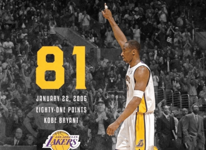 值得一提的是,一个月后,科比在对阵猛龙的比赛里独砍81分,全场出战42分钟,46投28中,三分球13中7,上演不可思议的81分屠龙;81分是NBA历史单场第二高得分。