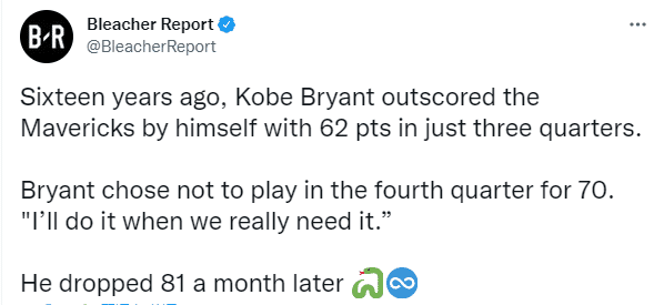 赛后当被问到为何不出场拿到70分的问题时,科比回应:我会在我们球队真正需要的时候再去做。
