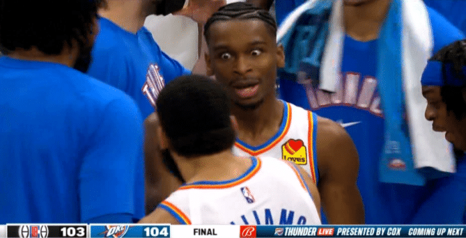 JRS直播12月19日讯 ,雷霆主场104-103绝杀快船,多尔特轰下全场最高的29分,雷霆核心球星亚历山大全场拿到18分6助攻3篮板,生死时刻,亚历山大晃开巴图姆并且命中三分压哨绝杀快船,制胜一击带领雷霆赢球,手刃旧主太狠,绝杀之后的瞪眼表情更是杀人诛心。