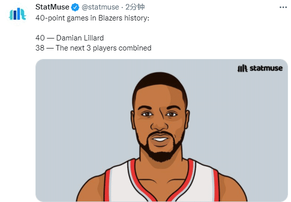第二、利拉德职业生涯第40次40+,继续刷新开拓者队史第一纪录,比队史第2、3和4名之和38次40+还多。