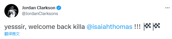 小托马斯将重返湖人引热议,拉文发推:我的兄弟回到了属于他的地方;湖人旧将克拉克森发推:yes,sir,欢迎杀手回来;美媒NBA onTNT晒照发推:他回来了。