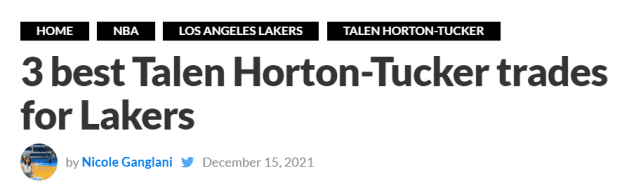JRS直播12月16日讯 近日,美媒报道称7支球队盯上了湖人的霍顿-塔克,那么如果湖人愿意交易塔克,他们能用塔克换回谁呢?北京时间12月16日,美媒clutchpoints列出了霍顿-塔克的三大交易方案,认为湖人的最佳选择是和活塞、老鹰或者国王进行交易。赛季至今,塔克场均11.3分4.5篮板2.9助攻,目前他正处于隔离中。