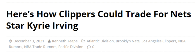 JRS直播12月05日讯 拒绝接种疫苗的欧文,依然处于休战的状态。北京时间12月4日,美媒nbaanalysis建议快船寻求一笔7换1的交易,试图从篮网换来欧文,打造欧文+乔治+小卡的三巨头阵容,未来冲击总冠军。