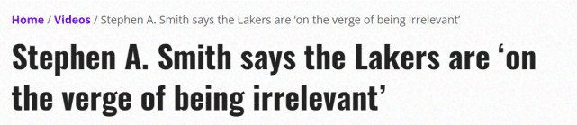 JRS直播讯 北京时间12月4日,名嘴斯蒂芬-A-史密斯在最新一期的First Take节目中谈到了湖人的境况,他认为这支球队就快和争冠无关了,而且他认为湖人会对勇士和太阳心存恐惧,但这并不是詹姆斯的错。