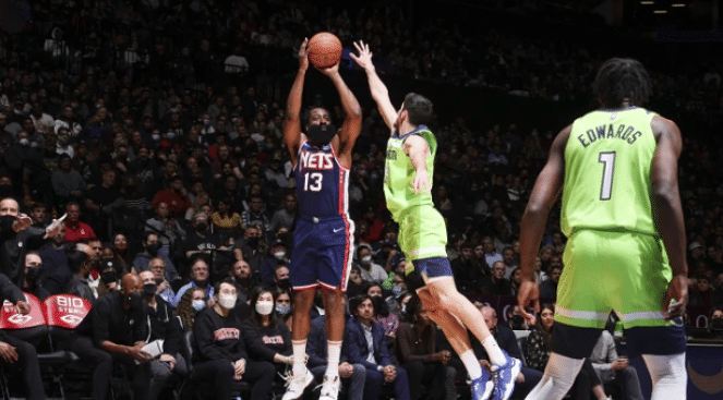 第四节,哈登抛投出手造成了拉塞尔打手犯规,他两罚全中。紧接着哈登助攻米尔斯投进三分球,当然哈登也有反击长传球,力量太大出界。哈登罚球线后撤步跳投命中。哈登助攻杜兰特跳投得分,哈登两罚中一,篮网成功拿下胜利。