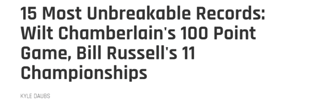 JRS直播11月28日讯 NBA已经迎来75周年,哪些个人纪录是最难打破的呢?北京时间11月28日,美媒Fadeaway World评出了史上最难打破的15项个人纪录,张伯伦一人独占5席,现役无人上榜。