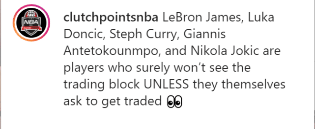 JRS直播讯 当今联盟中,有哪些球星是真正的非卖品?北京时间9月4日,美媒clutchpoints列出了现役五大非卖品,他们分别是詹姆斯、库里、东契奇、字母哥和约基奇。“除非他们自己要求,否则这些球员是不可能被球队交易的。”美媒评价道。
