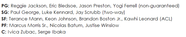 小前:特伦斯-曼恩、基安-约翰逊、布兰登-波士顿、科怀-莱昂纳德(韧带手术)