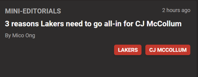 JRS直播讯 休赛期,湖人传出不少关于利拉德的流言,北京时间7月20日,美媒clutchpoints的观点是湖人最该全力追求的目标,是利拉德的后场搭档CJ-麦科勒姆。他们还列出了三大理由,认定麦科勒姆能与詹姆斯、浓眉组成有实力夺冠的三巨头。