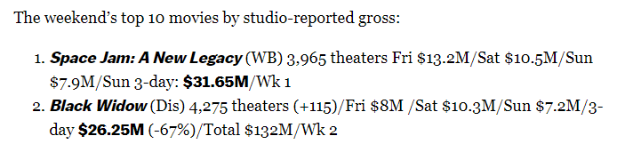 JRS直播讯 北京时间7月19日,詹姆斯新电影《空中大灌篮:新传奇》首周票房出炉,首周总票房是3165万美元,夺得北美周末票房冠军,这一票房也超越了当年乔丹《空中大灌篮》首周末票房纪录。