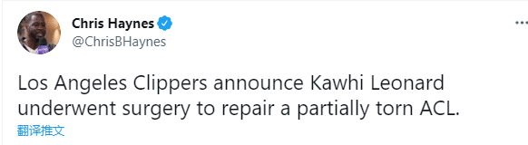 7月14日,快船队这边终于扭扭捏捏地给出了伦纳德的伤情,根据名记海耶斯的报道,伦纳德遭遇了十字韧带部分撕裂,目前,伦纳德已经完成手术,不过快船队这边并没有给出回归时间。