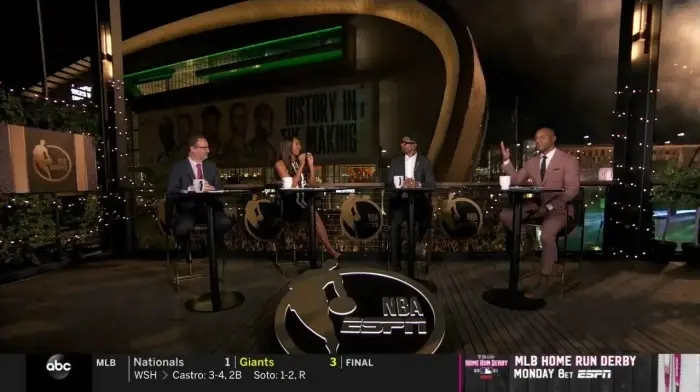 另外本场同样发挥渐入佳境,单节4个三分全场21分5板9助的霍勒迪,在采访时被外面放烟花的声音吓到!主持人说“霍勒迪,我知道,你现在听不到我说话。你们赢下了第三场比赛,现在外面放起了烟花。你得和我们说说,赛前你们0-2落后,你们说了什么来调整心态?”