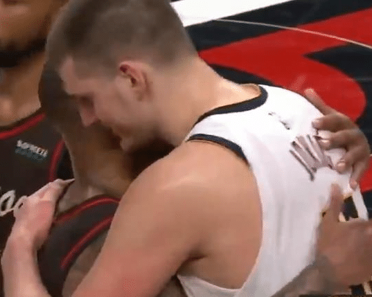 比赛结束之后利拉德和约基奇拥抱,两位联盟顶级球星之间惺惺相惜,虽然赛场上是对手,但现在系列赛已经结束,约基奇用自己的发挥带领球队前进,而这轮系列赛同样表现出色的利拉德很遗憾要回家了,他们连续季后赛一轮游。