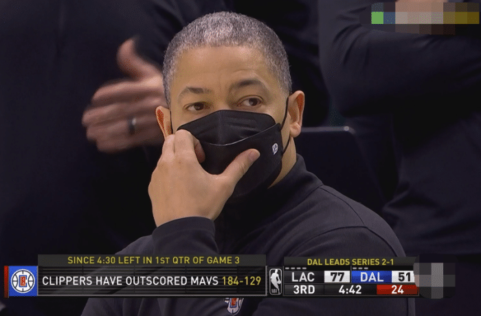 独行侠这边史密斯前7次出手命中1球,哈达威前7次出手命中1球,布伦森前6投2中,理查德森前6投2中,独行侠这边角色球员整体发挥不好,三节比赛打完快船82:60领先独行侠。比赛中出现了一个小插曲,球队大比分落后,东契奇十分沮丧,他拿着水瓶砸自己的头。