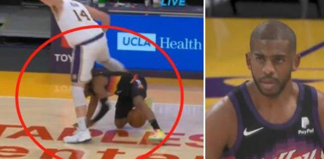 JRS直播讯 北京时间5月10日NBA常规赛继续进行,湖人主场123:110击败太阳。比赛过程中出现了让人印象深刻的一幕。比赛进行到第2节时,保罗和小加索尔发生对抗,保罗跌倒后小加索尔为了避免直接撞上保罗,选择跨过保罗。保罗随后抱怨此动作反而被裁判吹罚技术犯规,引来不少球迷的热议。