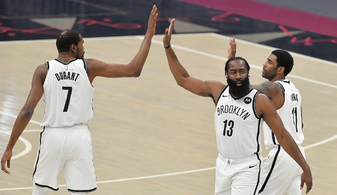 篮网连续第三场有两人砍下30+,NBA最近7年以来的第一次,今天砍下30+的是杜兰特和欧文,前两战是哈登和杜兰特。
