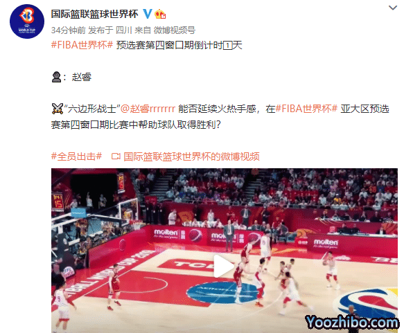 就在今天国际篮联篮球世界杯官方给中国队的比赛进行预热,却有比较尴尬的地方,那就是他们重点谈到了赵睿,称:“预选赛第四窗口期倒计时1天 赵睿“六边形战士”赵睿能否延续火热手感,在FIBA世界杯亚大区预选赛第四窗口期比赛中帮助球队取得胜利?”