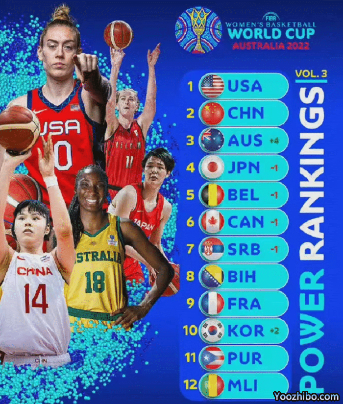 JRS直播讯 北京时间8月23日,国际篮联FIBA公布了2022年女篮世界杯的最新实力榜。