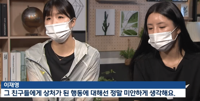 就在近日李在英、李多英接受了KBS电视台采访的时候谈到了很多,其中不乏有她们“喊冤”的内容,这对姐妹表示会因为这件事情后悔一辈子,但外界的传闻中有很多夸张的成分。对此李多英表示传闻中自己拿着刀子架在同学脖子头上是没有的事情,自己是拿着刀子威胁同学。李多英称自己已经和妈妈对着这名同学下跪道歉了,她也接受了,并解决了这件事情。