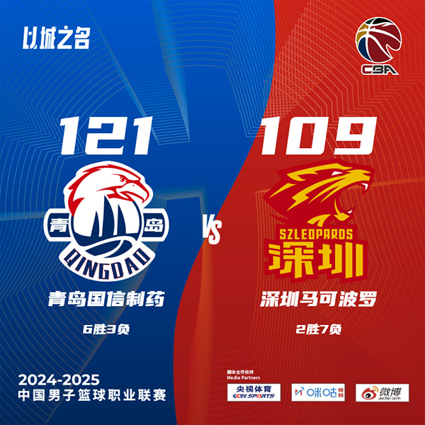 JRS直播10月31日讯 CBA常规赛,青岛主场迎战深圳,青岛目前5胜3负,而深圳则是3连败后2胜6负。比赛开始,伤病满营的深圳进攻端就不流畅,而青岛则是顺风顺水,韦瑟斯庞连续送助攻,米切尔吃饼弹无虚发,很快青岛便建立起主动权,首节领先14分,次节佩里苦苦支撑起进攻,杨瀚森中投手感不错,王睿泽接连外线三分接连命中,青岛扩大领先并在半场领先到18分。下半场,深圳上来9-0迅速缩小分差,但无奈犯规积累很快,青岛接连走上罚球线止血,末段深圳也接连走上罚球线继续追分,三节青岛还领先7分,末节双方继续拉锯战,杨瀚森内线始终无法阻挡,青岛保持10分左右的领先,最终青岛121-109力克深圳,送对手4连败。