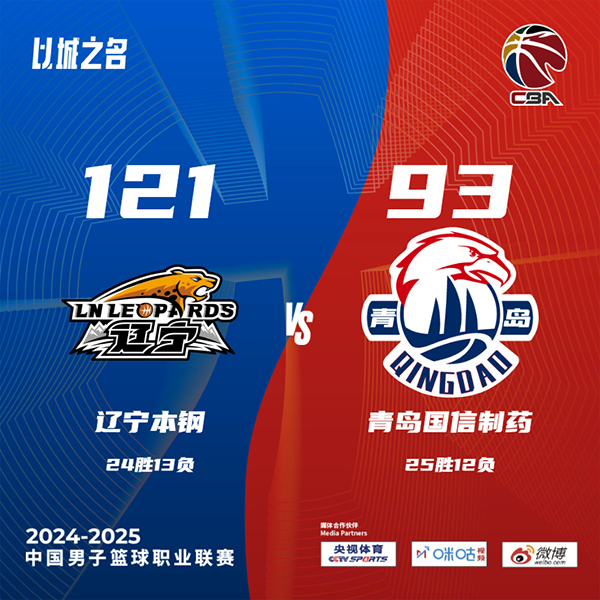 JRS直播讯:北京时间3月7日,2024-2025赛季CBA常规赛第37轮卫冕冠军辽宁队主场迎战青岛队。本场比赛为两队本赛季的“四番战”,青岛队2胜1负,对辽宁队已是2连胜。最终,辽宁队主场以121比93大胜青岛队,完成复仇。