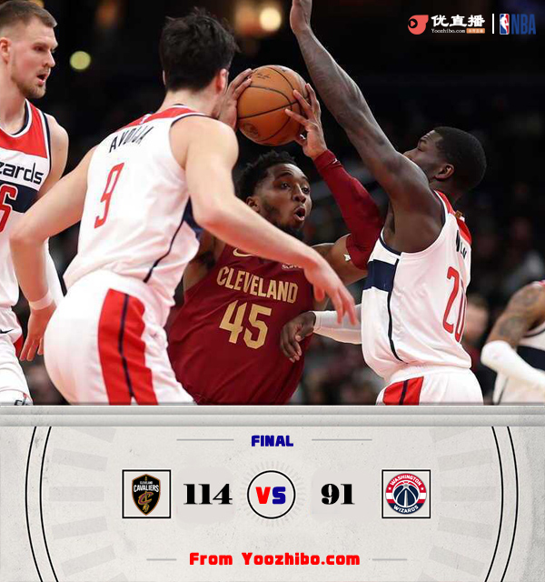JRS直播2月7日讯 NBA常规赛继续进行,奇才主场迎战骑士,此前奇才24胜28负排名东区第十,骑士则33胜22负位列东部第五。本场库兹马和比尔均缺阵。比赛开局,缺兵少将的奇才进攻状态不佳,骑士在禁区予取予求,很快建立两位数的领先优势,次节骑士稳扎稳打继续扩大分差,波尔津吉斯独木难支,奇才落后到20分,半场结束骑士66-46领先。易边再战,骑士延续上半场势头,分差被进一步扩大,奇才始终没能将分差缩小到20分以内,比赛很快来到第四节,奇才已经将主力换下,比赛结果盖棺论定,最终骑士114-91轻取奇才,取得三连胜。