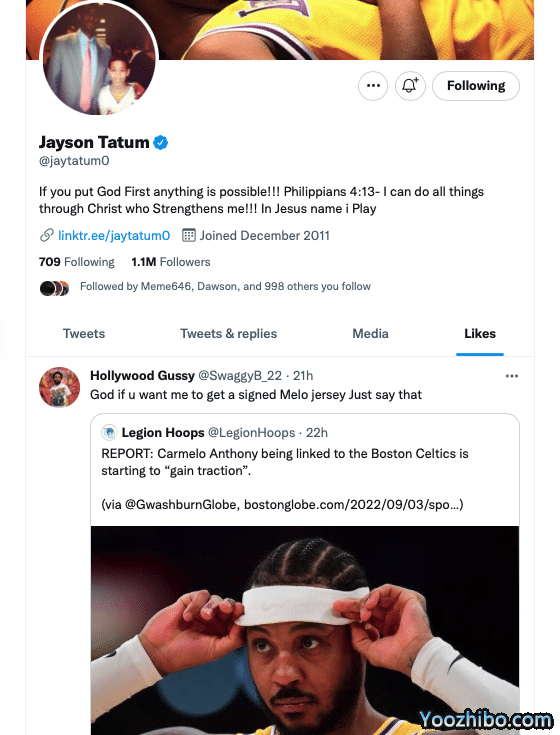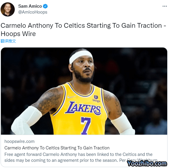 JRS直播09月07日讯 ,据美记者Sam Amico报道,38岁的老将安东尼与凯尔特人联系在一起,双方可能会在赛季前达成协议,塔图姆点赞考虑签约安东尼的流言,甜瓜或在绿军开启生涯第20年。