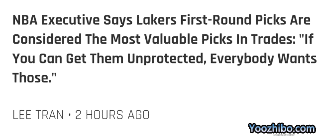 JRS直播09月05日讯 ,一位NBA高管接受记者Sean Deveney的采访,谈到了湖人的两个首轮签,在他看来,这是联盟中的选秀权里最有价值的。
