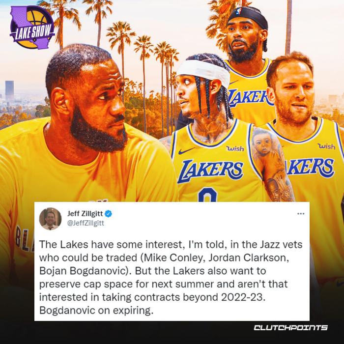据美记者Jeff Zillgitt报道,湖人有意爵士队一些老将,包括博扬、克拉克森和康利等,但湖人也想在明年夏天尽可能多地保留薪金空间,他们对拥有2022-23赛季之后合同的球员不太感兴趣。