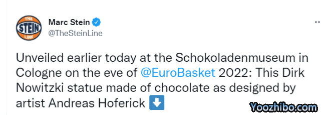 “当德国男篮向我提出这一想法时,我感到非常荣幸,”诺维茨基在一份声明中说道,“这是一个很好的惊喜,我已经对科隆等待我的事情感到兴奋了。作为FIBA欧洲杯的形象大使,我期待看到伟大的球队和精彩的比赛!”