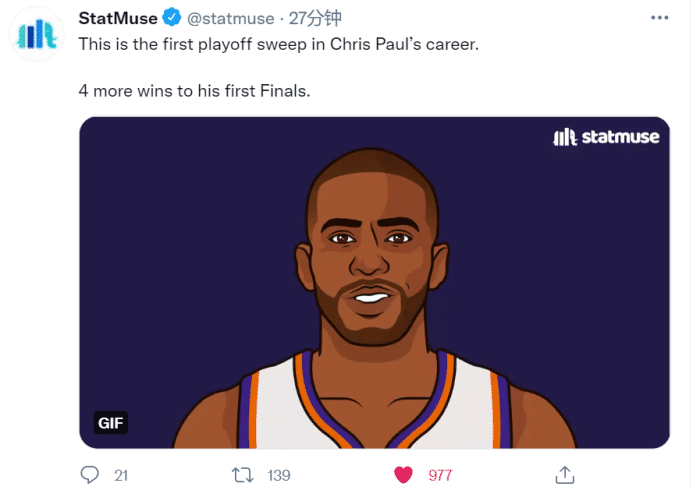再次恭喜保罗生涯第二次打入西部决赛,这支太阳已经季后赛七连胜,无论西决打快船还是爵士,太阳都有不错的机会冲击总决赛,36岁的保罗能圆满捧杯吗?让我们拭目以待!
