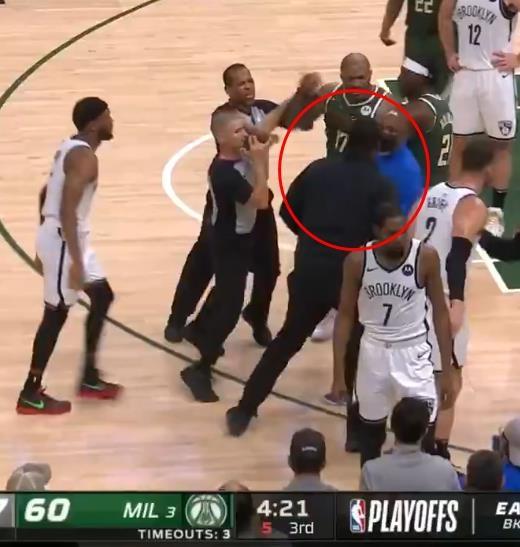 可是杜兰特这边和打拳皇一样,召唤了场外求助,杜兰特的私人保镖冲上场来顶开了塔克,死死地护住了杜兰特。私人保镖上场介入冲突,这事也让杜兰特和篮网队受到了质疑,特别是雄鹿队的霍乐迪表示私人保镖顶开塔克那一下很重,要求联盟处罚这样的行为。
