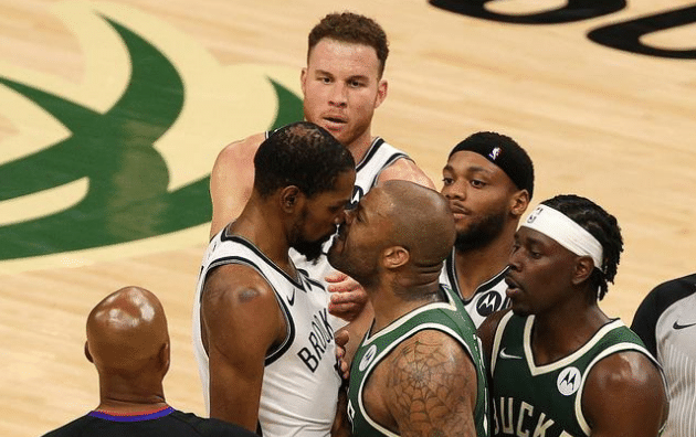 今天早些时候,联盟对篮网队G3时候杜兰特和塔克的冲突做出了裁决,为了帮助杜兰特而与塔克发生肢体冲突的保镖遭到了联盟的禁赛,他在本轮系列赛的剩余比赛中都被禁止入场。客观上说,这名私人保镖关键时刻保卫好了杜兰特了免受对手的攻击,从一定程度上说是球队的功臣。但联盟有相关规定,非比赛场上的球员不能介入场上的任何事情,所以他的这一做法并不妥当。