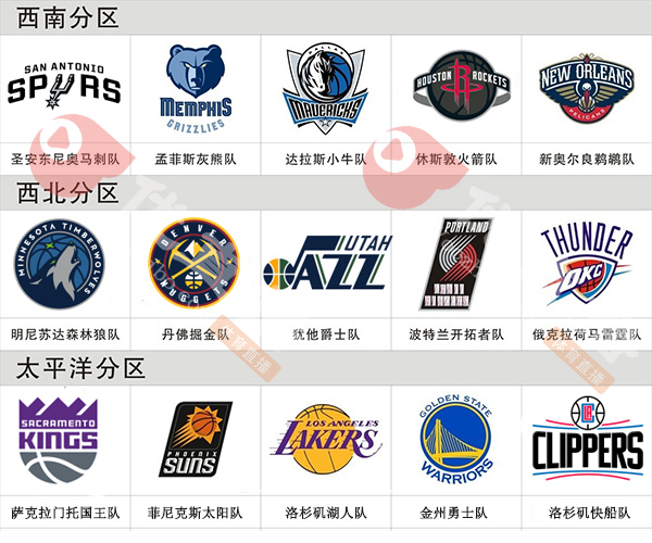 一、NBA西部联盟包含三个赛区,每个赛区各有5支球队分别是: