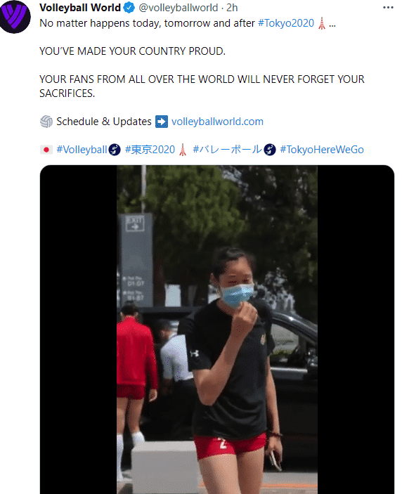 而就在中国女排出线无望后,北京时间7月31日,国际排联也在社交媒体上发文,表明了对朱婷的支持。国际排联晒出了一张朱婷在奥运会训练的照片,并且附文深情的写道:“不管今天、明天或者未来发生什么!你都已经是中国的骄傲!来自世界各地的粉丝,都不会忘记你的牺牲!”