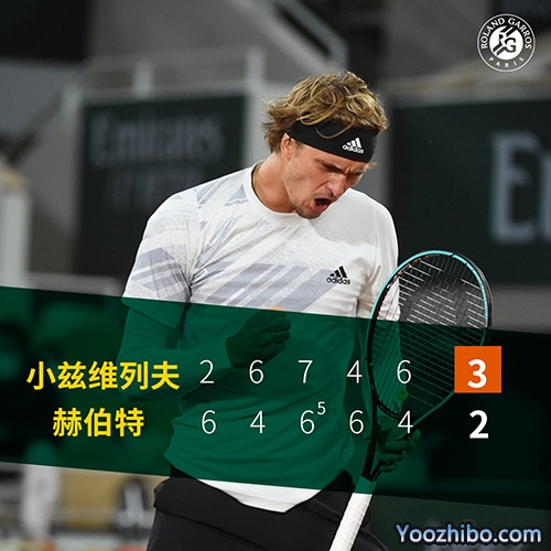 JRS直播讯:北京时间10月1日消息,2020年法国网球公开赛展开第四日的争夺,在男单次轮的对决中,6号种子兹维列夫以2-6/6-4/7-6(5)/4-6/6-4力克法国本土选手赫伯特,艰难晋级。而日本名将锦织圭4-6/6-2/6-7(7)/6-4/2-6不敌意大利人特拉瓦格利亚,无缘第三轮。