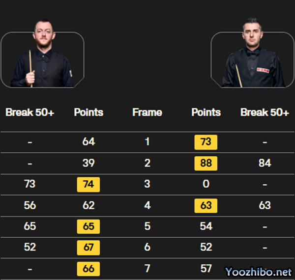 北京时间3月5日,2024斯诺克利雅得世界大师赛1/4决赛中,马克-艾伦对阵塞尔比,最终,马克-艾伦凭借单杆打出73分、56分、65分和52分,总比分4-3险胜对手塞尔比,成功晋级四强!