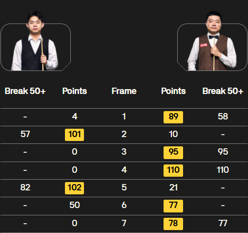 比赛开始后,丁俊晖展现了其作为顶尖选手的实力和经验,而袁思俊也表现出了不俗的竞技状态。在比赛过程中,丁俊晖凭借其精准的控球和出色的战术布局,多次打出高分单杆,给对手施加了巨大压力。根据报道,丁俊晖在比赛中至少打出了三杆破百(单杆100分以上),这在斯诺克比赛中是非常罕见且显示高水平的表现。