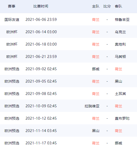 荷兰队欧洲杯26人球员大名单及赛程一览