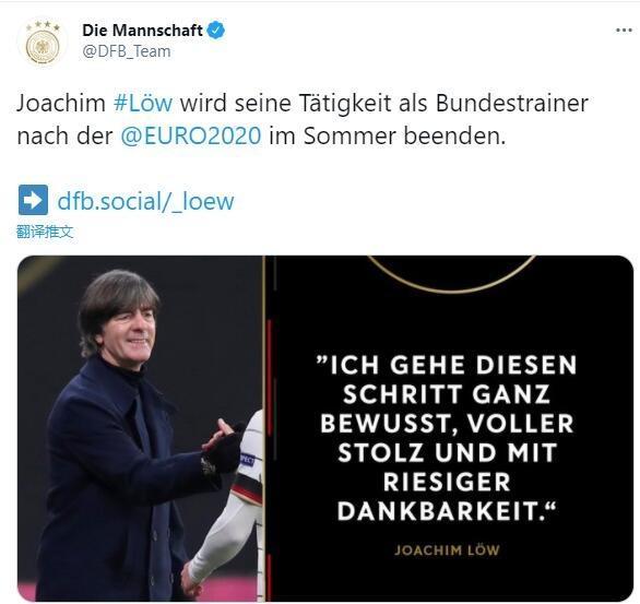 在2021年欧洲杯结束后,勒夫将不再执教德国国家队,教练本人要求结束合同,原合同2022年